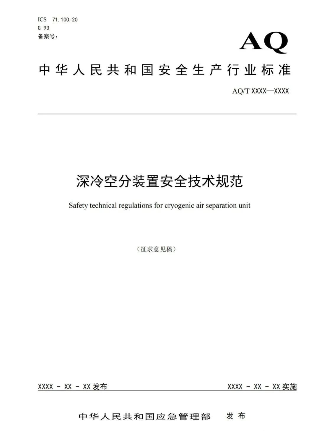應急管理部對《深冷空分裝置安全技術規(guī)范》等兩項標準征求意見