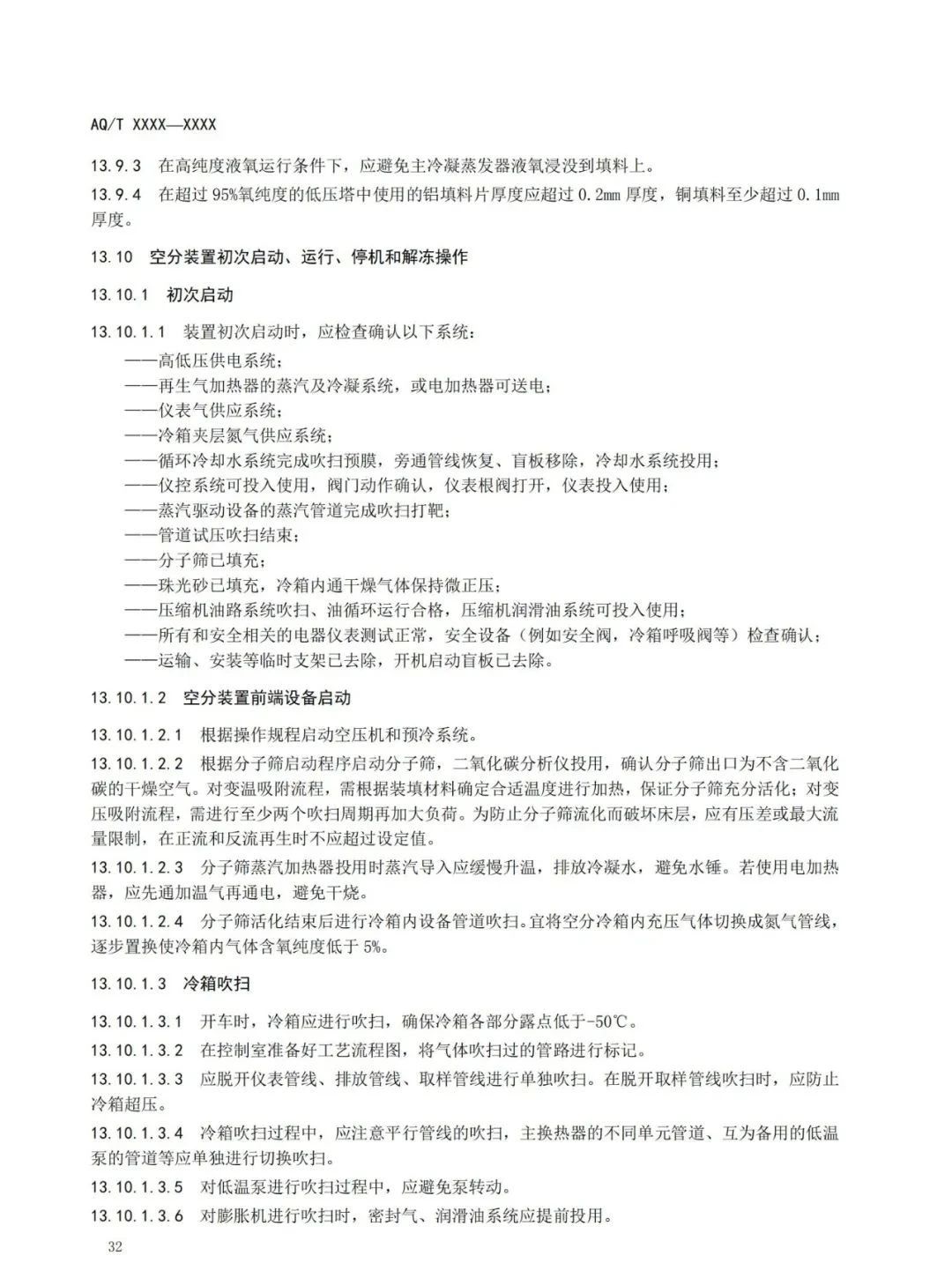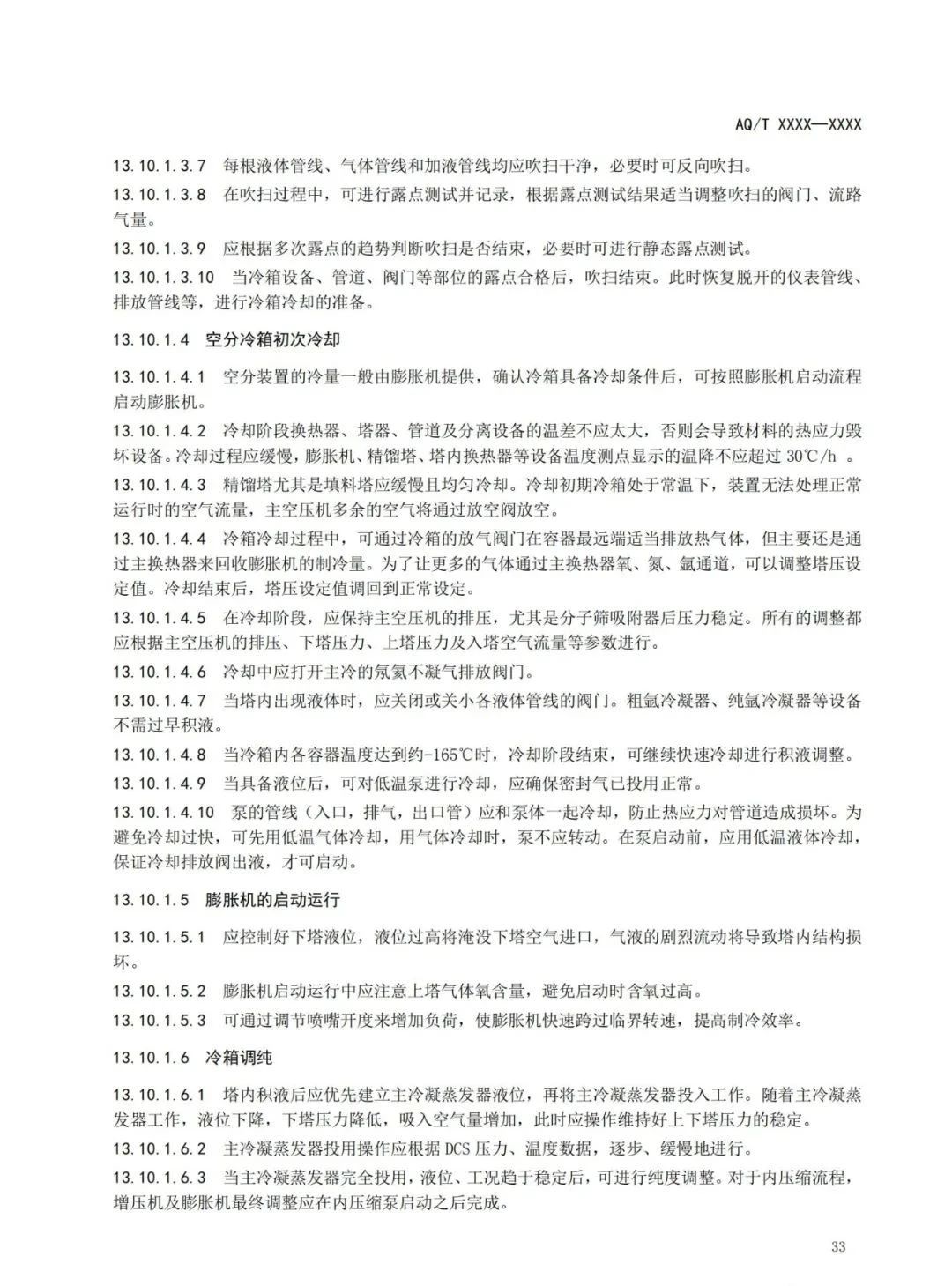 本標準規(guī)定了深冷空分裝置的總體布局、吸入空氣質量控制、壓縮機、膨脹機、低溫泵、空分冷箱和精餾系統(tǒng)、產品儲運、稀有氣體裝置、控制系統(tǒng)、安全操作運行、人員管理與事故應急處置等內容的要求。