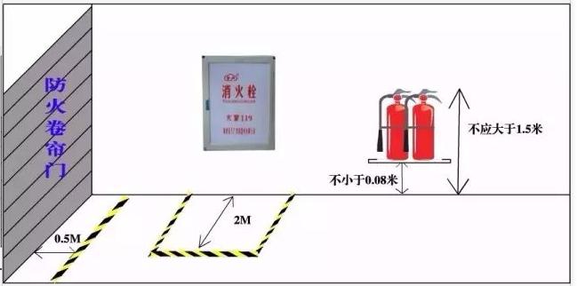 防火卷簾門兩側(cè)各0.5m范圍內(nèi)不得堆放物品,并應(yīng)用黃色標(biāo)識線劃定范圍?!度藛T密集場所消防安全管理》(GA654-2006)8.3.7
