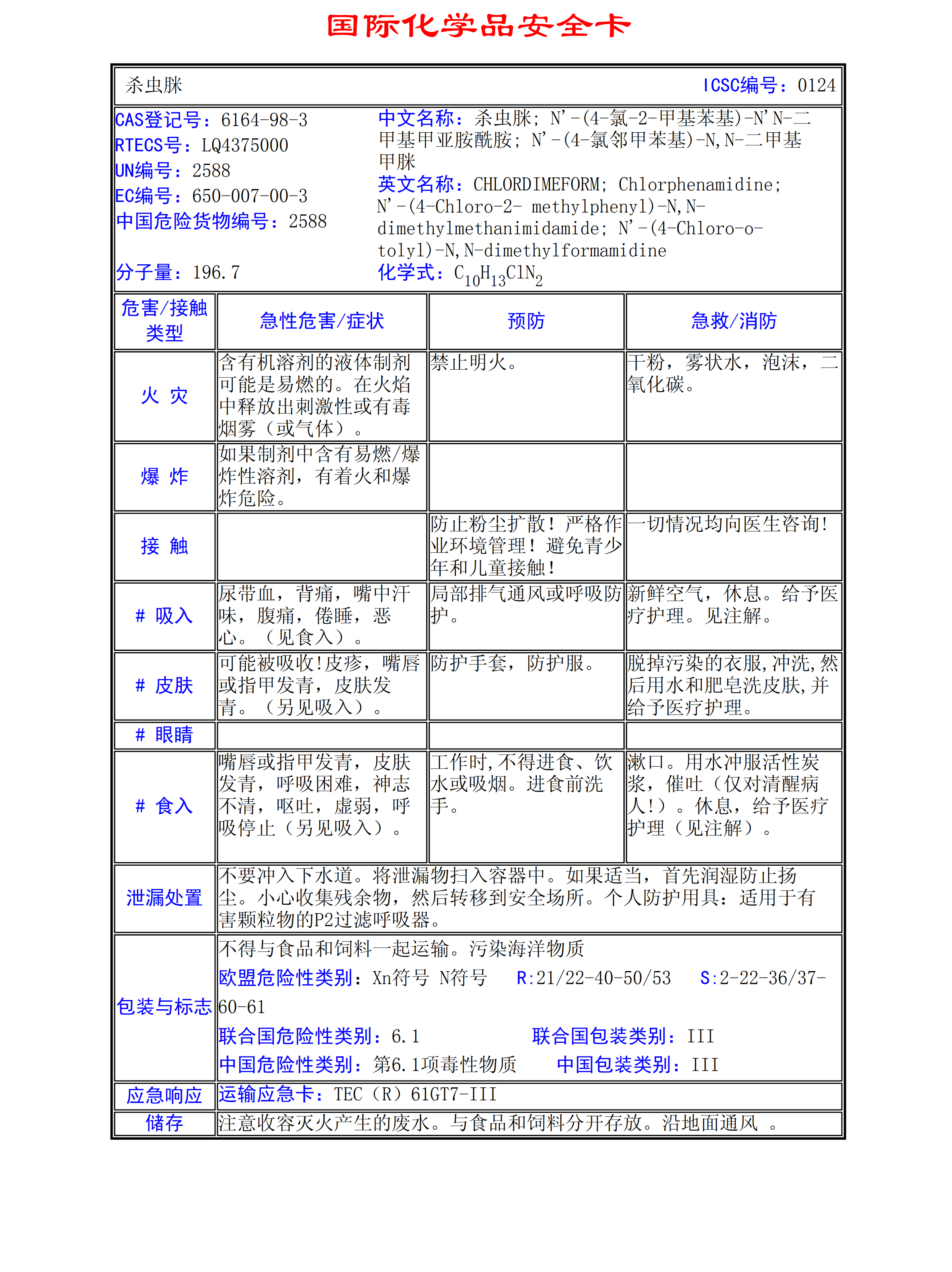 殺蟲(chóng)脒鹽酸鹽MSDS