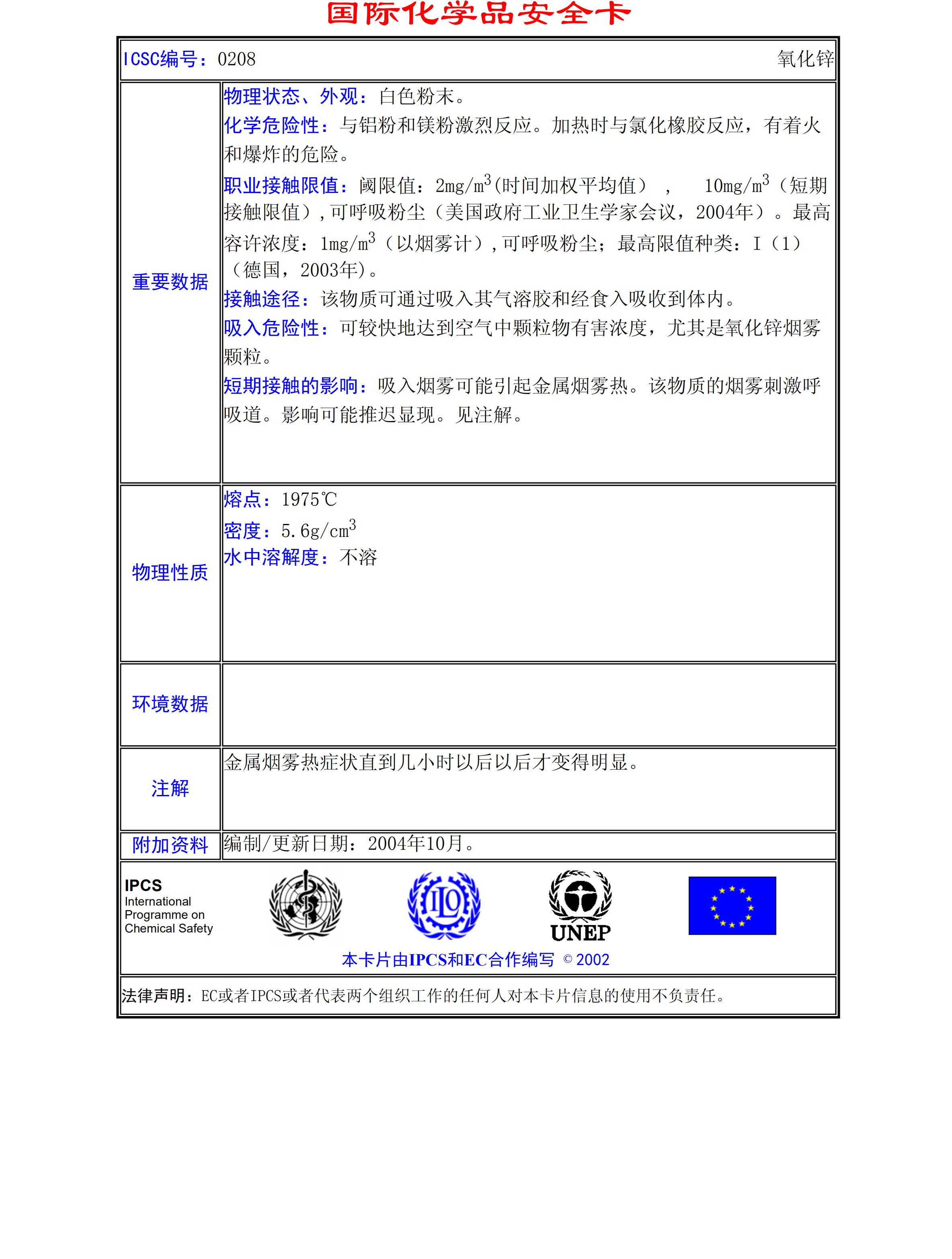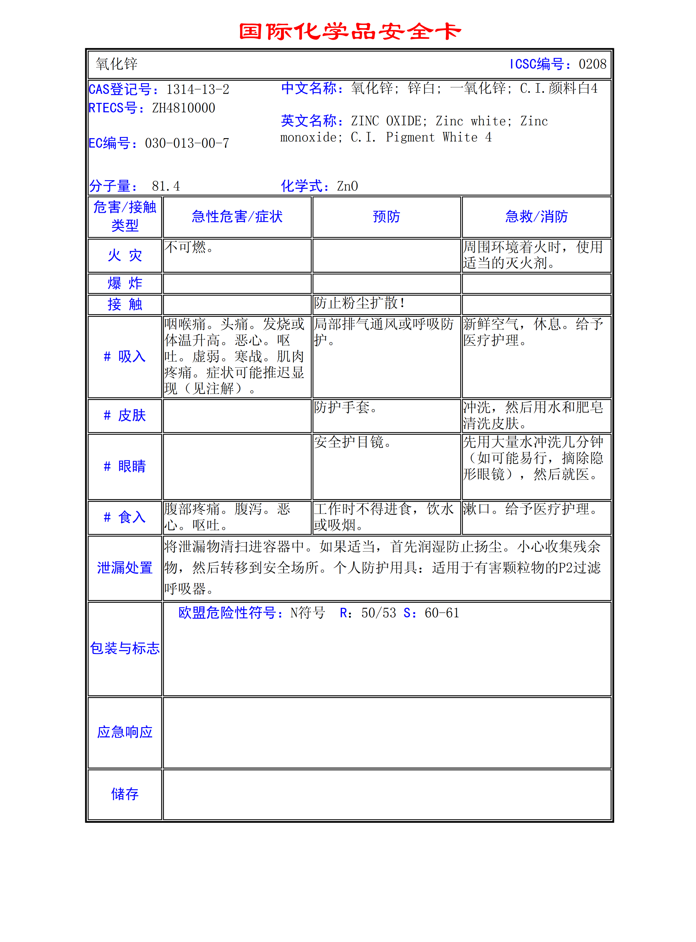 氧化鋅MSDS