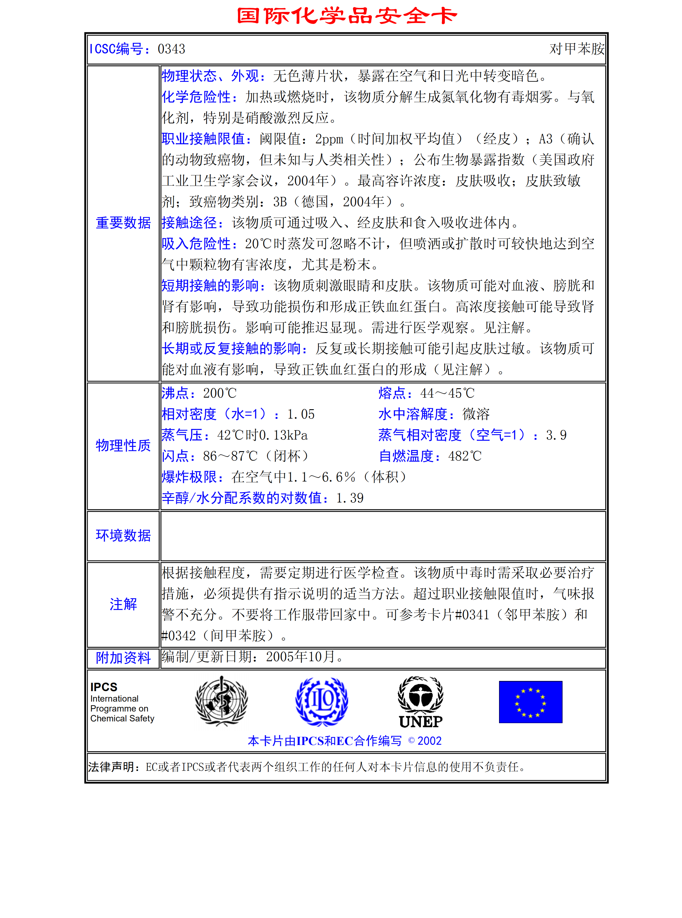 對(duì)甲苯胺MSDS