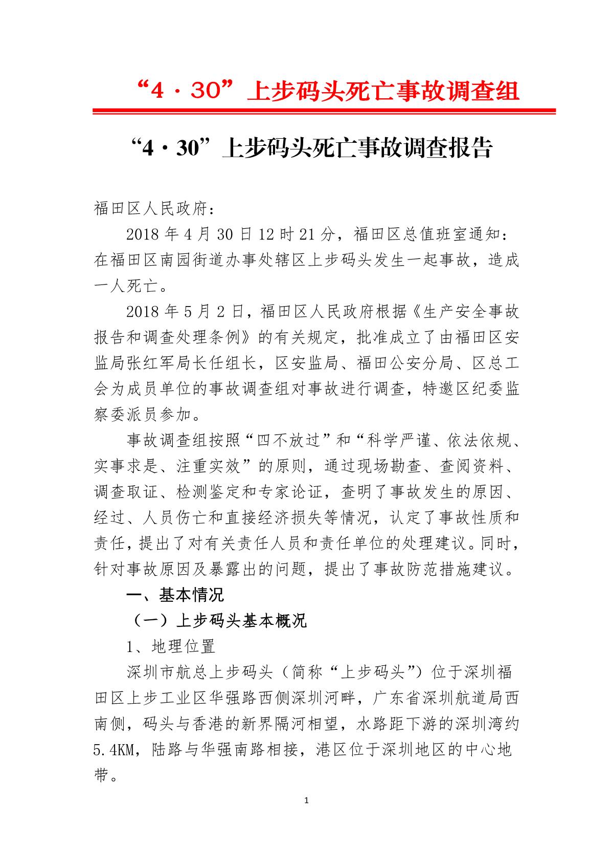 “4.30”上步碼頭死亡事故調(diào)查報告