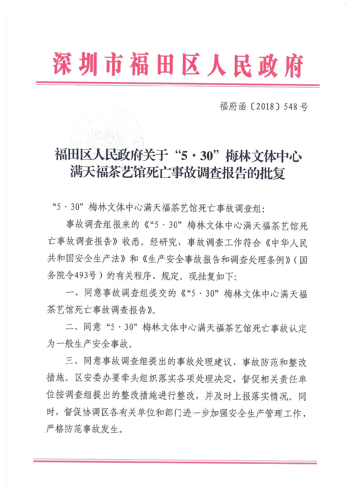 “5.30”梅林文體中心滿天福茶藝館死亡事故調(diào)查報告