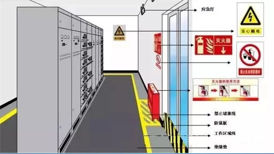 (2)帶電設(shè)備有明顯標(biāo)志;