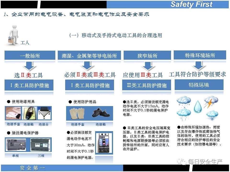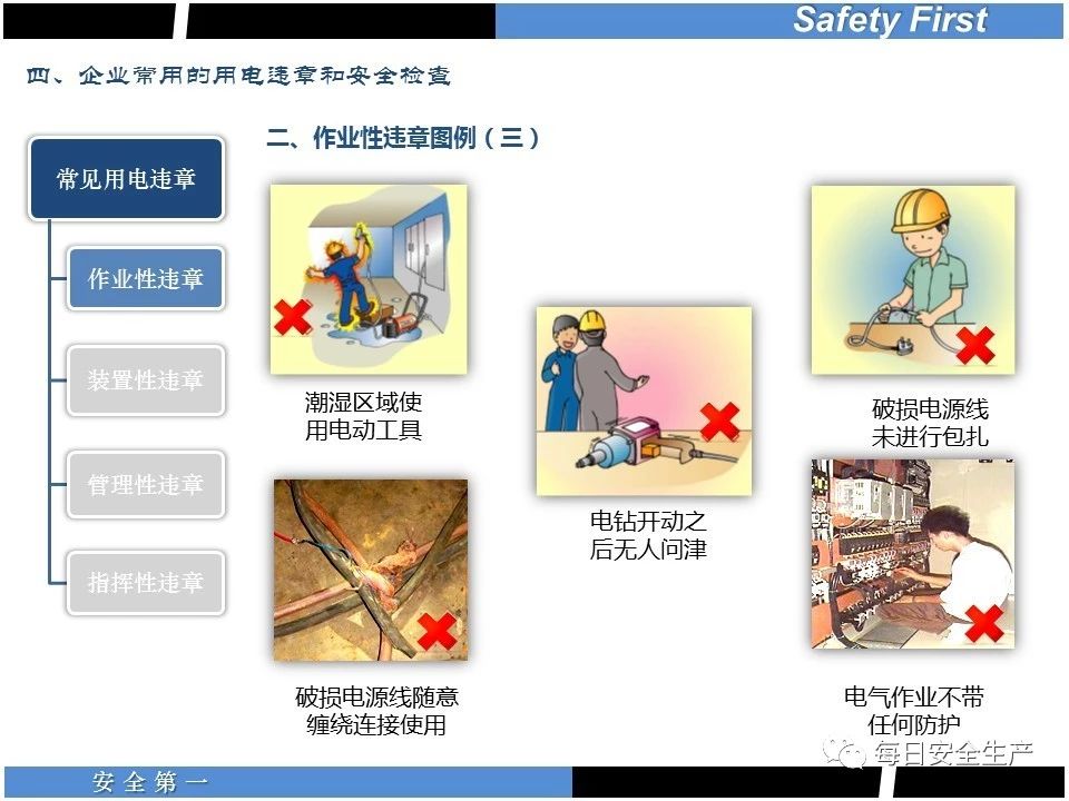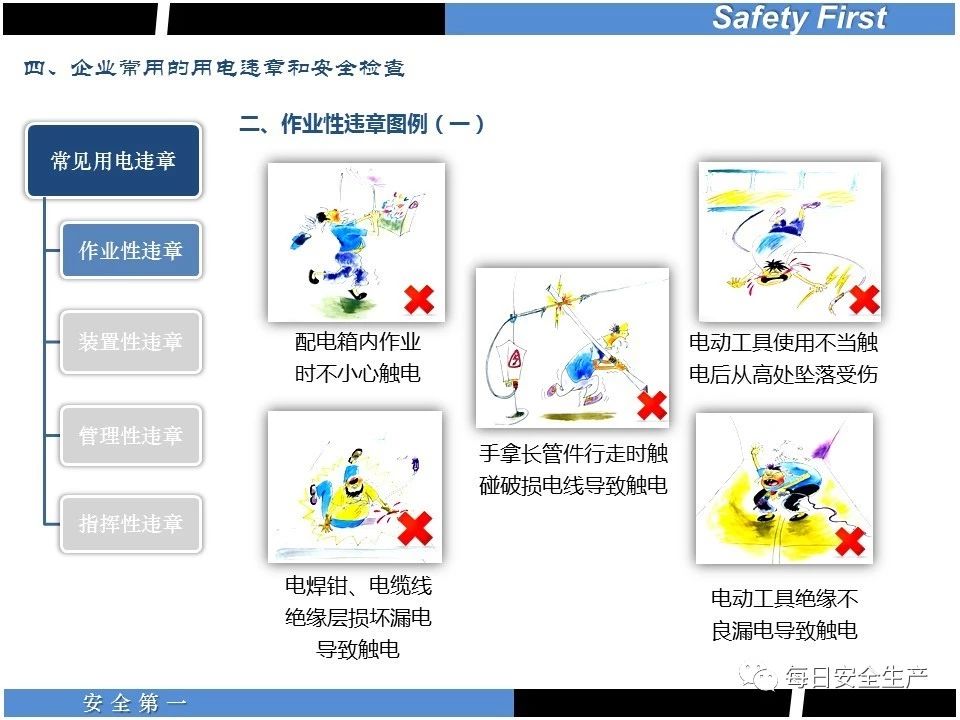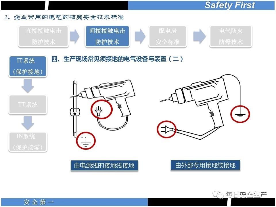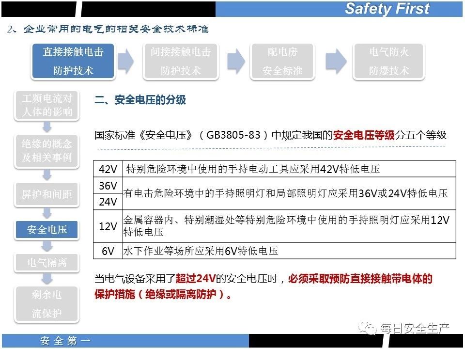 (4)在一些觸電危險(xiǎn)較大的場(chǎng)所,采取安全低電壓電流;