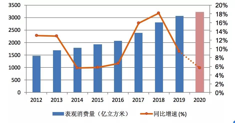 中國石油經(jīng)濟(jì)技術(shù)研究院今年年初預(yù)測(cè),我國2020年天然氣消費(fèi)量將達(dá)到3300億立方米,同比增速8.6%。