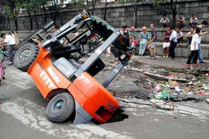 工人企圖阻止叉車傾翻反被壓死視頻