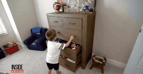 小孩玩耍時被柜子砸倒
