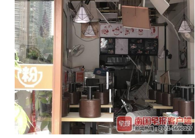 當(dāng)天上午9時許,記者在現(xiàn)場看到,出事的粉店位于小區(qū)沿街商鋪,鋪面前已拉起了警戒線?,F(xiàn)場沒有明火,店內(nèi)多處玻璃被震碎,一片狼藉。事發(fā)粉店旁邊的其他店鋪并未受影響,正常營業(yè)。