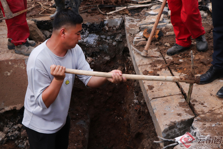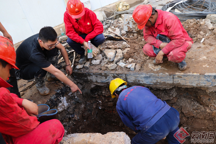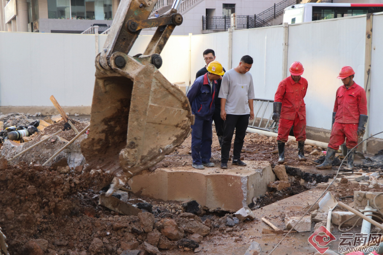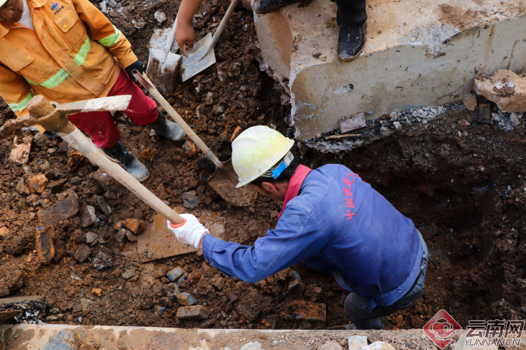 【昆明塘子巷天然氣泄漏】現(xiàn)場:多部門聯(lián)手搶修 施工人員奮力挖掘破損管道