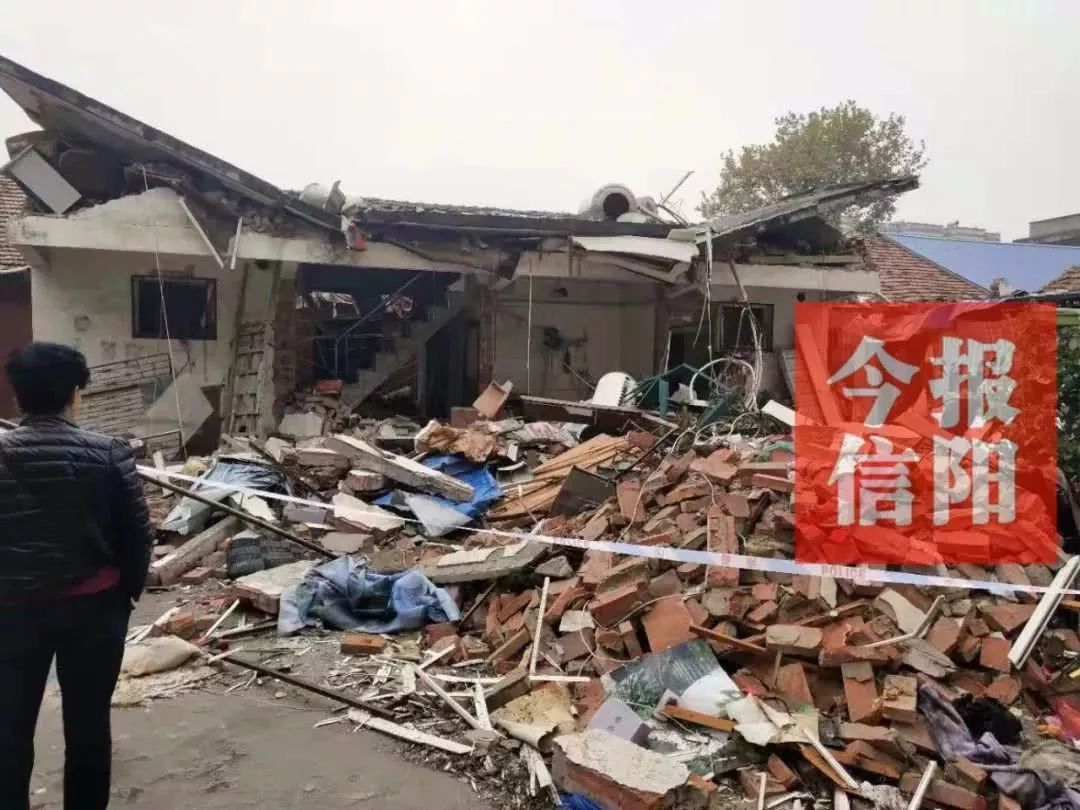 信陽淮濱縣一廢品收購站煤氣罐爆炸 造成房屋倒塌 一人死亡