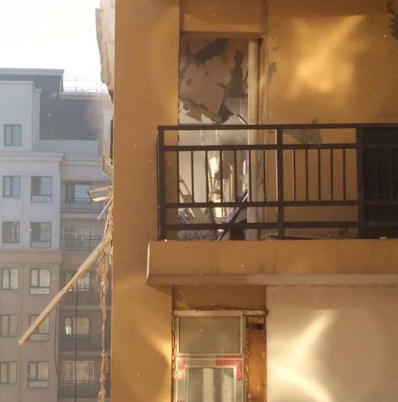 9 時(shí)許,記者趕到涉事小區(qū),小區(qū)地面上散落著大量玻璃碎片,此時(shí)小區(qū)3 號(hào)樓4 單元已被設(shè)立警戒線,29 樓一民宅窗戶碎裂,樓外墻體苯板裂開數(shù)條裂縫,該樓層走廊一片狼藉,樓層電梯間已嚴(yán)重變形,供暖、供水、電力、燃?xì)獾炔块T工作人員在樓內(nèi)排查,樓內(nèi)居民已全部被疏散。