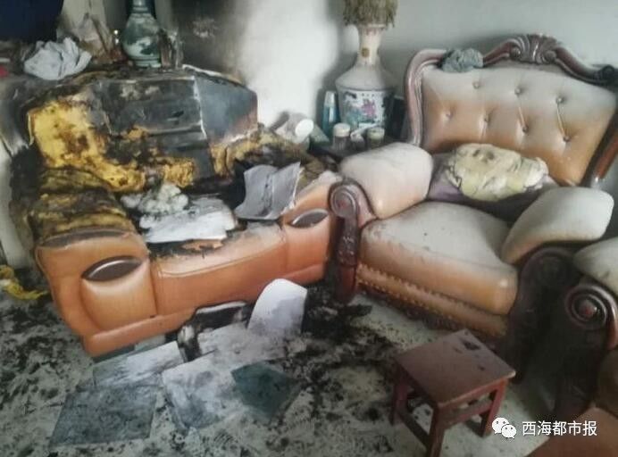 走進(jìn)事發(fā)的住戶家,屋里一片狼藉,沙發(fā)、電視機(jī)、洗衣機(jī)、電燈開關(guān)等物品被燒,臥室和客廳的玻璃碎了。家里養(yǎng)的小貓蜷在陽臺上一動不動,它的嘴巴在流血,胡子和尾巴被燒。