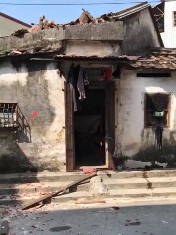 從網(wǎng)友提供的事故現(xiàn)場(chǎng)視頻中我們可以看到,該棟民宅的屋頂嚴(yán)重受損,大面積的瓦片被炸飛,掉落在大門口附近。