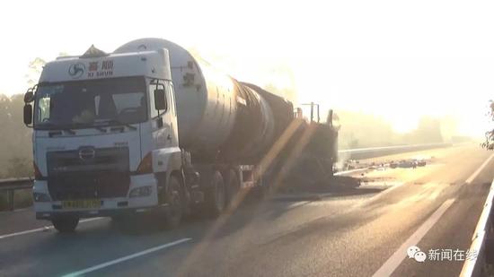 廣西:貨車追尾引燃19噸天然氣 事故造成兩人死亡