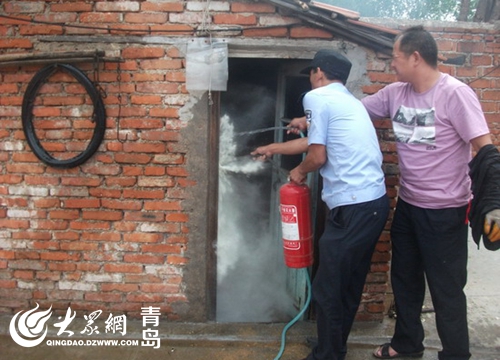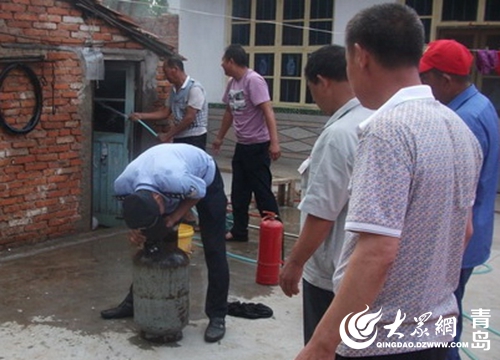 7月25日13時(shí),黃島公安分局理務(wù)關(guān)派出所接到群眾報(bào)警,村民曲大娘在廚房給老伴煮綠豆湯時(shí)煤氣罐突然起火。接警后,理務(wù)關(guān)派出所民警立即趕到現(xiàn)場,發(fā)現(xiàn)煤氣罐在西屋廚房內(nèi),煤氣罐軟管接口脫落,接口處正在噴火,并且已經(jīng)引燃了附近的桌子,十分危險(xiǎn)。民警迅速靠近火勢區(qū)域,頂著濃煙先將煤氣閥關(guān)閉,然后和附近群眾一起利用滅火器對廚房內(nèi)可燃物進(jìn)行噴灑,并用打濕的衣物蓋在液化氣罐上對罐體進(jìn)行冷卻,成功化解了險(xiǎn)情。此時(shí),曲大娘懸著的心也放了下來。