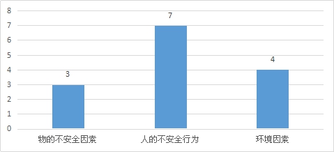 (三)按事故原因統(tǒng)計:三季度,人的不安全行為造成7起事故,7人死亡;物的不安全因素造成1起事故,3人死亡;環(huán)境因素造成4起事故,4人死亡。 電力人身傷亡事故不同原因死亡人數(shù)