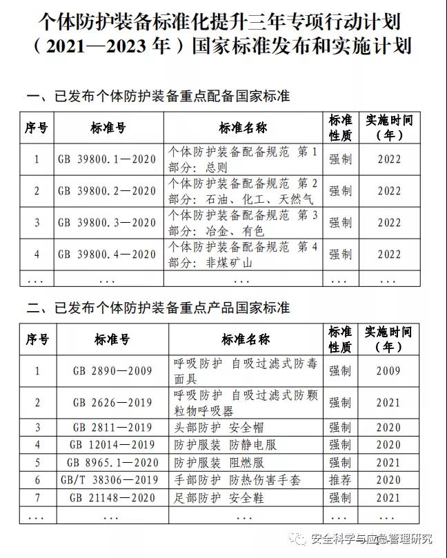 個體防護裝備標準化提升三年專項行動計劃 (2021—2023年)
